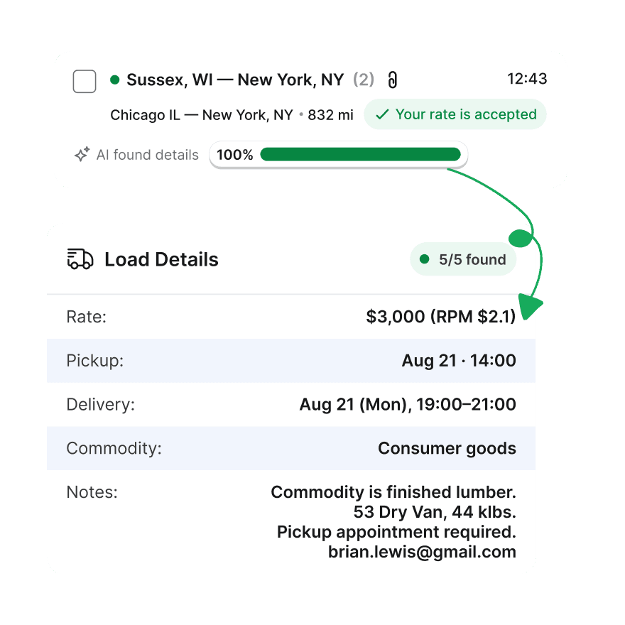 Let AI handle the repetitive parts of emails so you stay focused on finding freight.